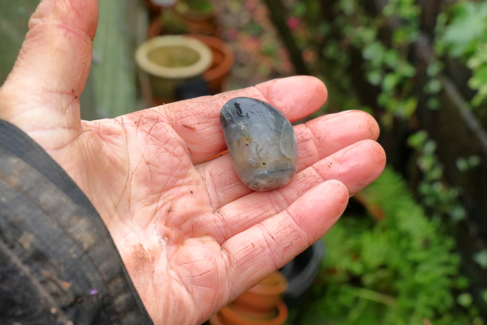 If I had to hazard a guess I’d say it was a stone that came to hand when an unwanted critter was in the garden and it wasn’t very carefully aimed. Perhaps it was too well aimed and bounced off the critter’s head! It was neither of our two cats, they were accounted for.