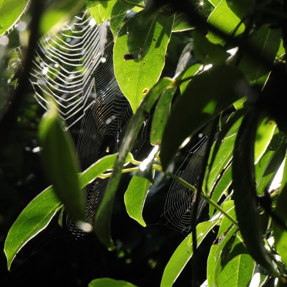 Love that shot of the banana leaf!! Great colours and shadows. Sounds like you had a good, inspiring break. There are tons of cobwebs bedecking everything around here. They were especially visible with the fog yesterday. It’s those long linking web-lines at head level that I tend to walk into 🙂