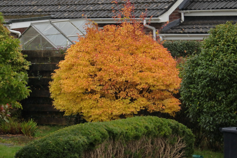 While I was taking the shot of the Yucca from an upstairs window, I noticed how good the Acer palmatum ‘Sango-kaku’ across the road was looking. OK, it’s not in my garden, but the photo was taken from our house, so it’s almost legit. I’ll give you a close up and the context, unlike the Yucca, which would have been even worse.