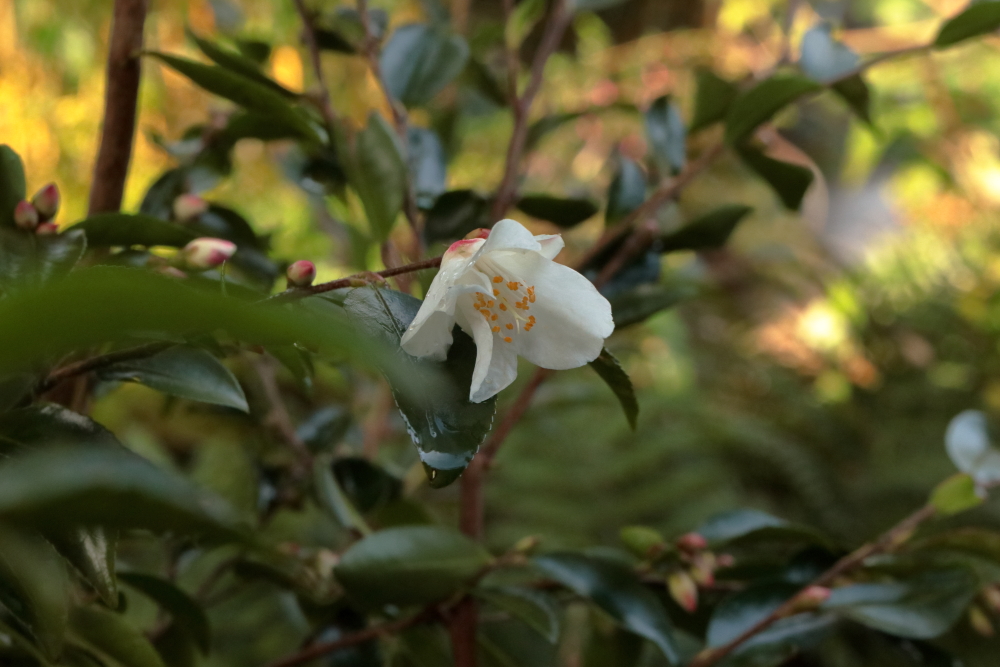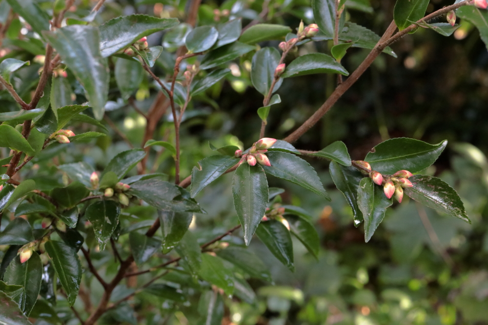 Going round the garden today I spotted a first flower out on another Camellia, the species Camellia lutchuensis. This is the one that is being used quite a lot to produce perfumed hybrids and even today, with the temperature only a little above freezing, it was quite fragrant. It’s also shaping up to be a graceful and pretty large shrub (or small tree if I live long enough), upright, with slender branches, small leaves and abundant flowers.