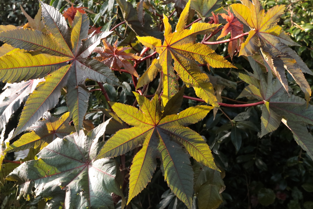 Those leaves of the Ricinus are rather impressive with the sun shining through them. https://onemanandhisgardentrowel.wordpress.com/2024/11/23/six-on-saturday-23-november-2024/