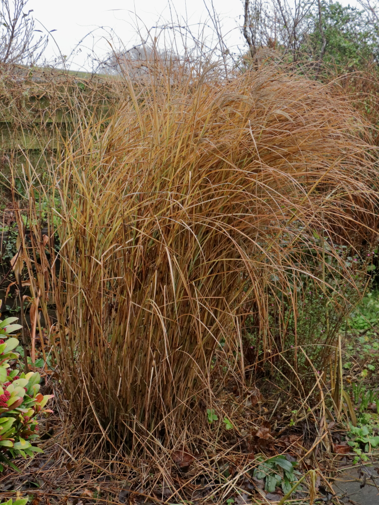Five weeks back I posted a picture of Miscanthus sinensis ‘Morning Light’ lying prostrate under a dusting of wet snow. I have done nothing to it and somehow it has dragged itself back to almost upright. It isn’t exactly sporting autumn tints but it’s making an effort so I’ll leave it for now.