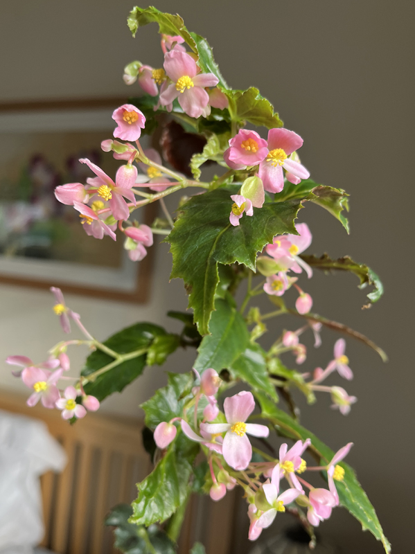I sowed seed of Begonia heracleifolia 18 months ago and among the seedlings was one that wasn’t heracleifolia or anything like it. It appears to be a cane type, it’s already over 18 inches tall, but it doesn’t have the pendulous flower racemes that come with typical cane types and it has much small leaves. It’s already flowering quite freely for a young plant so it’s looking like a good’un. I took a couple of snapshots with the phone, they’re not very good but you’ll get the idea. I got the seed from Plant World, who I thought collected their own seed, so it might be worth asking them whether it is from their own plants and what is growing nearby.