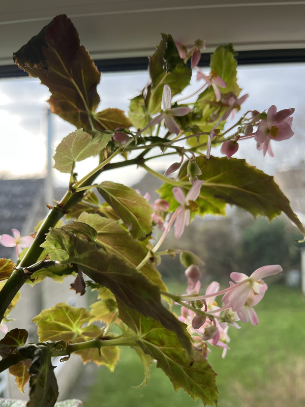 I sowed seed of Begonia heracleifolia 18 months ago and among the seedlings was one that wasn’t heracleifolia or anything like it. It appears to be a cane type, it’s already over 18 inches tall, but it doesn’t have the pendulous flower racemes that come with typical cane types and it has much small leaves. It’s already flowering quite freely for a young plant so it’s looking like a good’un. I took a couple of snapshots with the phone, they’re not very good but you’ll get the idea. I got the seed from Plant World, who I thought collected their own seed, so it might be worth asking them whether it is from their own plants and what is growing nearby.