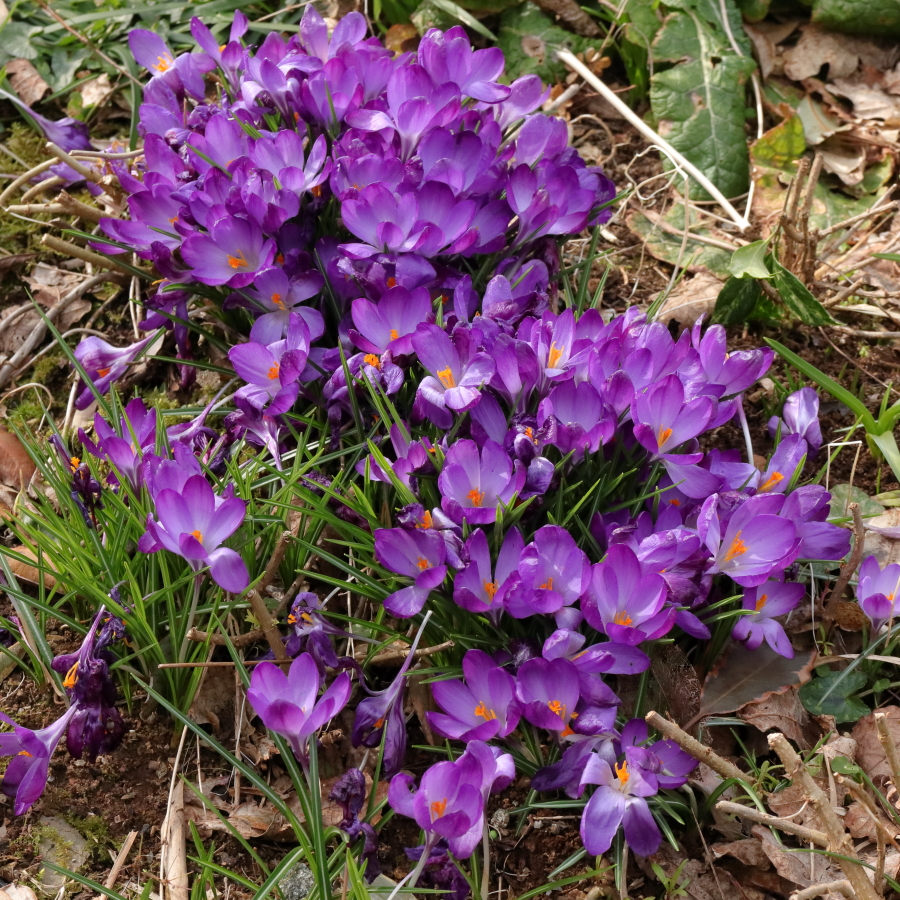I bought and planted two varieties of Crocus tommasinianus at the same time. The dark ‘Ruby Giant’ have stayed in tight clumps and look like they should have been spaced more, the other, the name of which I can’t remember, look like they grew from very thinly scattered seed, as random as could be.