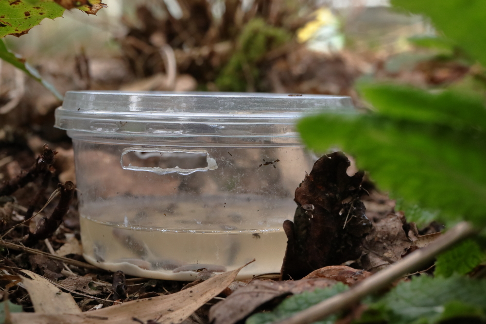 For the next couple of evenings I gently swirl the mix, including the dead slugs, just as it’s getting dark and perhaps move it a short distance. It appears to attract slugs from perhaps 2-3 feet away, so it takes a lot of traps or a lot of moves to clear a big area. After a couple of nights the traps seem to attract few if any more slugs. It has become ineffective or all the slugs are dead. I tip the trap out, wash the pots out and start again.