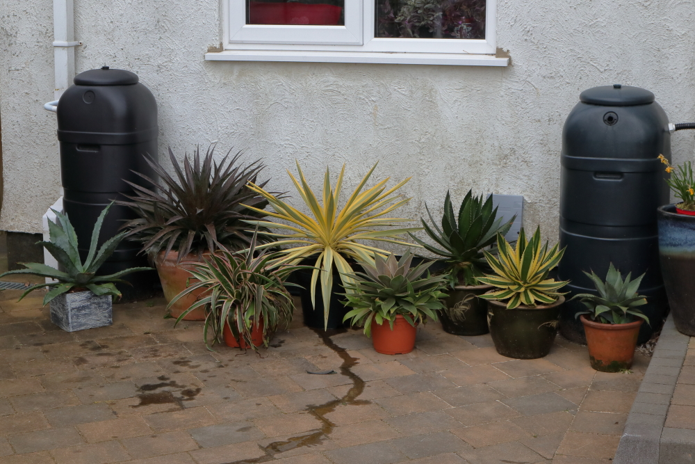 I’m always very keen to move out any Agaves we’ve had in the greenhouses over winter. Not only do I regularly stab myself on them but I live in dread of poking an eye out with my eyesight not being anywhere near what it used to be. I’ve had a few close calls and they’re very unnerving. For now they’re at the front of the house, with Yuccas and Mangaves for company. Taller things will go in front of the water butts in due course.