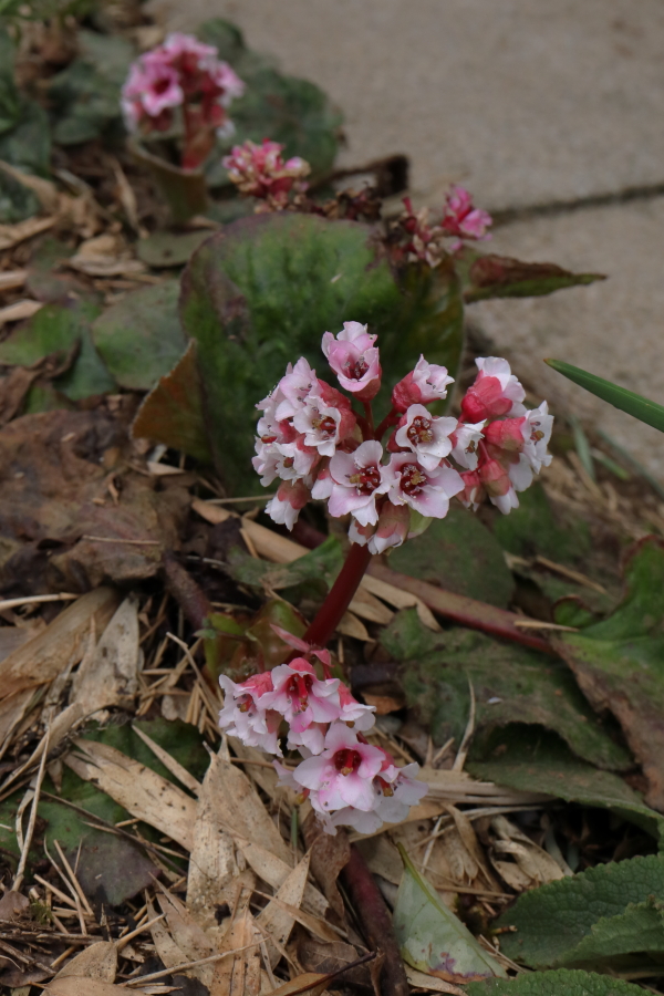 The Bergenia would do itself a favour by flowering later. Last years leaves have all but gone and when the new ones grow they are impressively large and exotic looking but I don’t get flowers and leaves together. (pretty much like Epimedium)