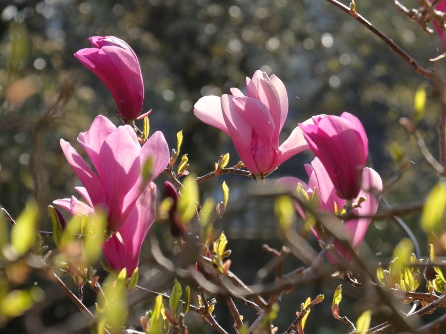Magnolia ‘Ann’ looks like it might have been singed by frost at some point this week but it still looked good backlit by the evening sun.