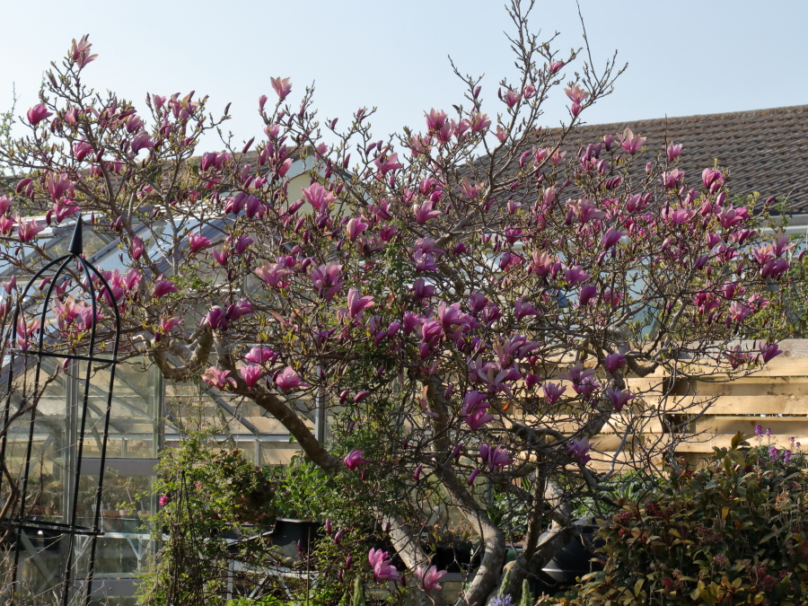 My garden is also a sea of blue as the FMNs dominate once again. Luckily easy to pull out. I also seem to have loads of chickweed, but sadly no chickens. Your magnolias are fabulous, I hope the HF doesn’t get to it, and my little azalea (bought last year) is only just showing new leaves! As you have said the rain is actually quite welcome, but I too do not want rain every day for the next fortnight, it will not improve the look of my tulips.