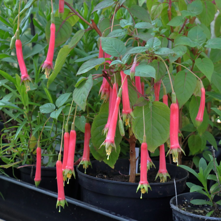This Fuchsia is flowering away in the greenhouse having been propagated from a plant in the garden which is no longer around. It has a label saying Fuchsia ‘Karl Hartweg’, which is a form of F. splendens. It did well in the garden and deserves to go back, but it won’t flower at this time of year. Outside it gets killed to the ground every winter and while it regrows OK it doesn’t flower until quite late in the year.
