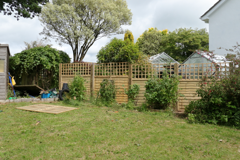 I flagged up an impending construction project last weekend and I am profoundly relieved to be able to report that it is done and dusted. The picture shows four fifths of a fence finished, looking from the neighbour’s side towards our garden. The last panel had to be cut down to fit but is now in place. The mound of foliage atop the fence at the left is my Holboellia brachyandra, which had gone along the length of the five replaced panels. I’m not blaming it for the fence posts breaking at ground level, as far as I know, they were the posts that were there when we moved in 35 years ago, though I had replaced the panels at some point.