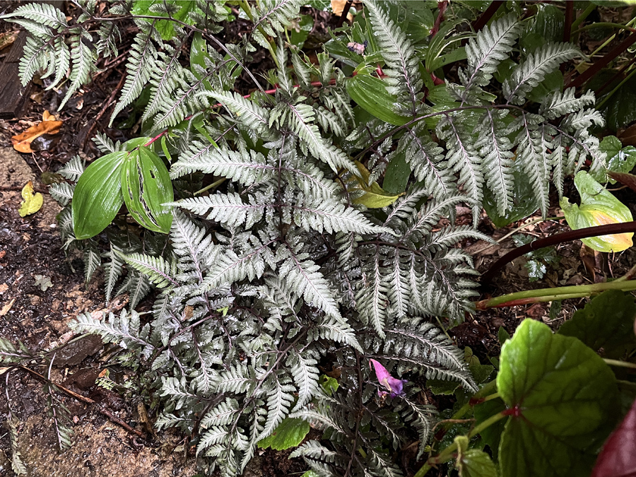 It’s a Plant Delights introduction from 2009 and is assumed to be a hybrid of the Japanese painted fern, Athyrium nip onicum, with Athyrium asplenioides, leading to it being exceptionally large and vigorous, but sterile.
