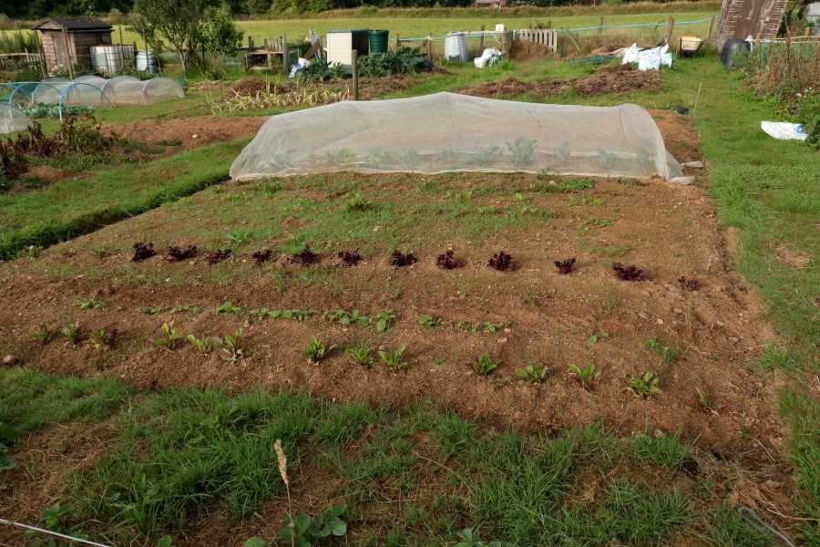 August, except for the last few days, was very dry. Seeds that I sowed in July and August have struggled to make headway in spite of being watered occasionally. Eight weeks on from sowing beetroot, carrots, chard, spring onions, lettuce and perpetual spinach, with the lettuce failing to come up, I can say that I am reasonably confident of getting usable crops of spinach, chard and carrots, may get usable beetroot and won’t get usable spring onions. For me, in south-east Cornwall, the beginning of July seems to be the absolute latest I could direct sow anything much and get a usable crop. That’s a bit early for sowing a second crop where I have had peas or potatoes in the early part of the year, but OK after an overwintered crop like kale or leeks, which would be gone by May. Modular sowing in May or June, such as the row of cabbage ‘January King Marabel’ that I sowed 15th May and planted at the beginning of July, would be the only viable way to get two crops in one season from the same piece of ground.