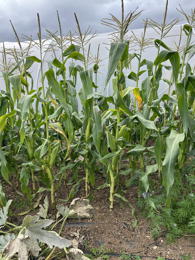 Sweet Corn has been good this year, I had an exceptionally good seed germination and ended up with probably rather more plants than I needed. I then planted them perhaps a little too close and I suspect I may get only one cob from most of them instead of the more usual two. They seem to have been slow to fill out properly, probably due to lack of water, which is no longer an issue. We’ve been eating them for about a week and feel a tad overwhelmed. We should probably freeze some but they’re so good when really fresh.