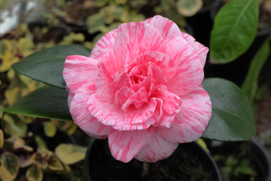 Unknown Camellia. For several years I have been working as a volunteer on the National Collection of Camellias at Mount Edgcumbe. They have no propagation facility so I have tried to root cuttings of some of the plants in the collection that strike me as at risk of being lost. There is an area of the park known as the Zig-Zags, about a mile along the coast from the main garden, where there are a number of old and mostly unidentified camellias that may date from the mid 1800’s. This is one of them, taken from a younger plant in the same area that may itself be an earlier (1980’s ?) propagation from one of two much older plants of the same variety. It flowers February-March in the park, my rooted cutting is in my glasshouse, so earlier.