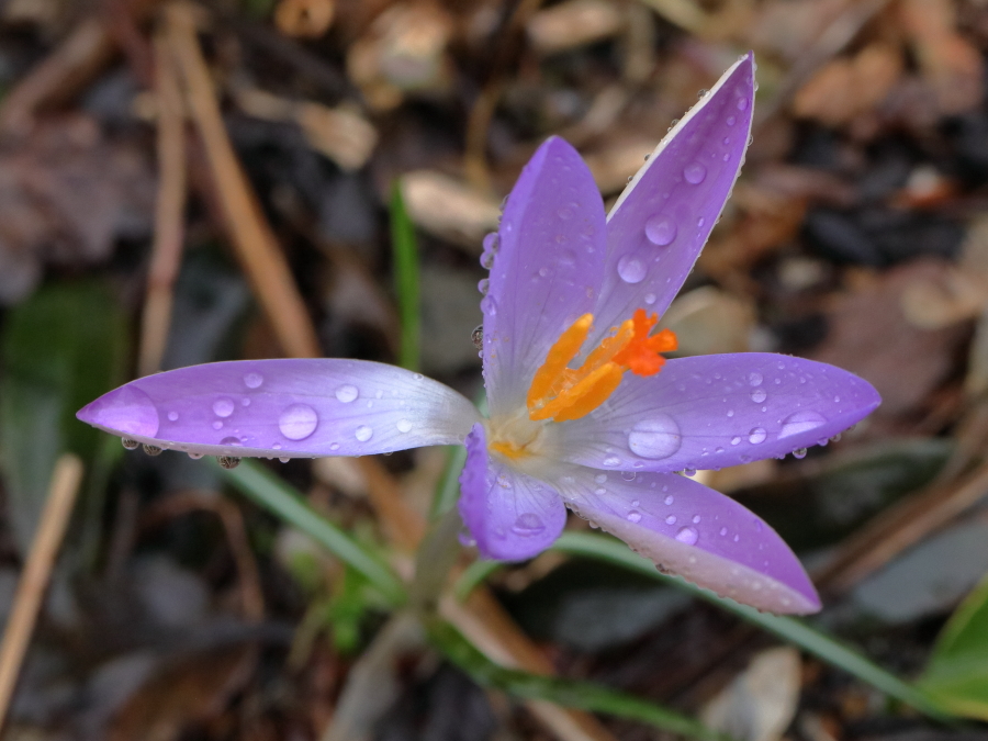 The garden is full of promise, new shoots and buds abound; but I fear that in the absence of some sunshine some of it will never come to fruition. One of the Crocus tomasinianus decided to defy the rain and open anyway.