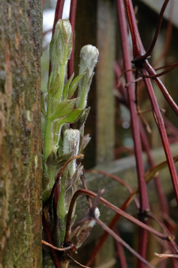 There’s a well established tradition in my winter posts to put in a picture of what seem absurdly precocious shoots on Clematis and accompany them with remarks about how bad I feel when I cut them all off in the annual hard pruning. Clematis viticella ‘Etoile Violette’, tradition upheld.