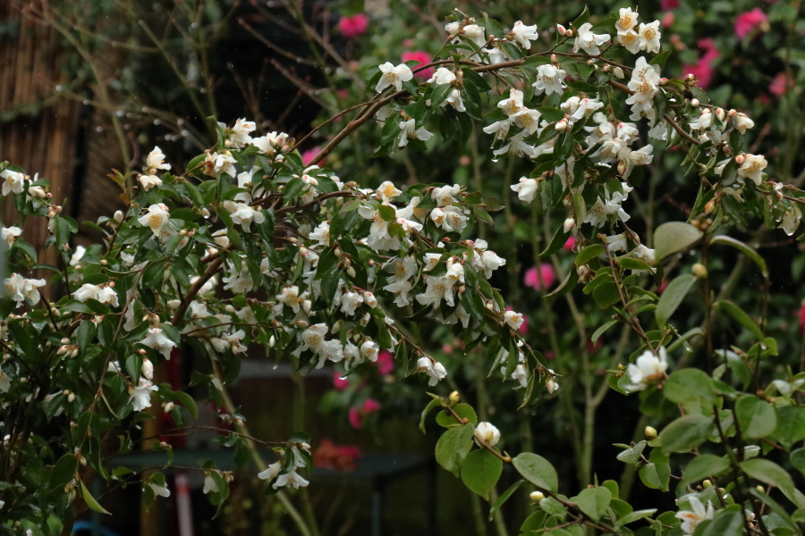 I have put Camellia lutchuensis into two previous sixes this year but this week it hit peak flowering so I’m putting it in again. Pass within a few metres down wind of it and there is a wonderful perfume in the air. It has a graceful, twiggy habit that makes it hard to photograph; you see through it and there’s almost always some part of it moving. I hope and expect it to eventually make a small multi-stemmed tree.
