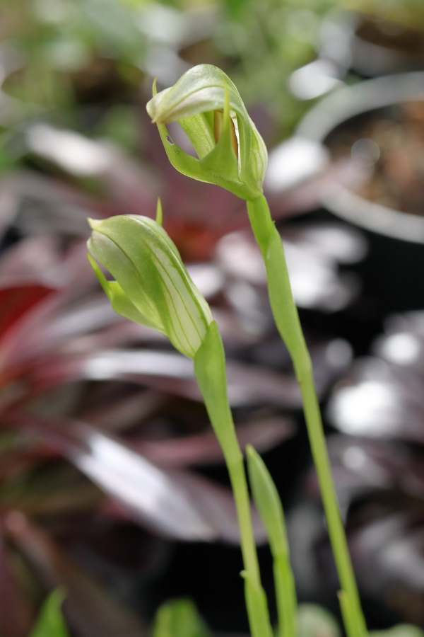 The greenhouse plant that I’m thinking of as interesting is Pterostylis curta, an Australian hooded orchid known as the blunt greenhood orchid. Like the Tropaeolum it is somewhat ephemeral but it must be remarkably tolerant of abuse to have survived the treatment meted out to it by me. Both it and the Tropaeolum are kept dry all the time they are dormant then watered generously when new growth appears in winter.
