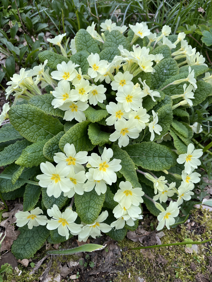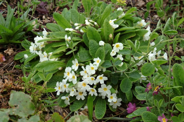 I’m in danger of not putting Primula vulgaris, the common primrose, into a six because there are always six more exotic subjects to fill the roster. They have seeded prolifically around the garden and I have been happy to let them. I lose a lot, to a combination of dryness and vine weevils I should think, but there are always new ones coming on and the numbers are steadily increasing. They all but disappear in summer, happily hidden under the shade of summer performers, to reappear when the Salvias, Dahlias, Penstemons et al have gone into winter hibernation. Undoubtedly one of most garden worthy wild flowers. I am quite impressed by how high a proportion come true, with no sign of contamination from the various hybridised and very mixed colour forms we have. I have one seedling that is almost white which I like very much.