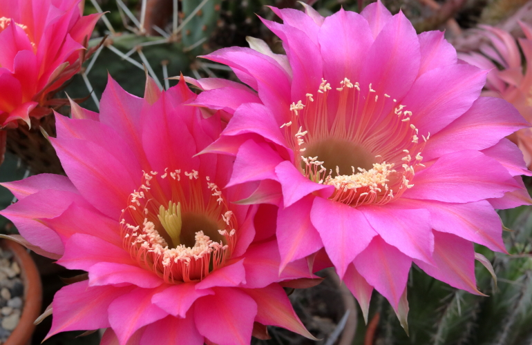 Every year there is a day that stands out as the pinnacle of the Cactus display in Sue's glasshouse. Some cacti have flowers that last only 24 hours, opening in the evening to be pollinated by moths, then fading through the following day. They tend to be very large and showy flowers, usually faintly but…